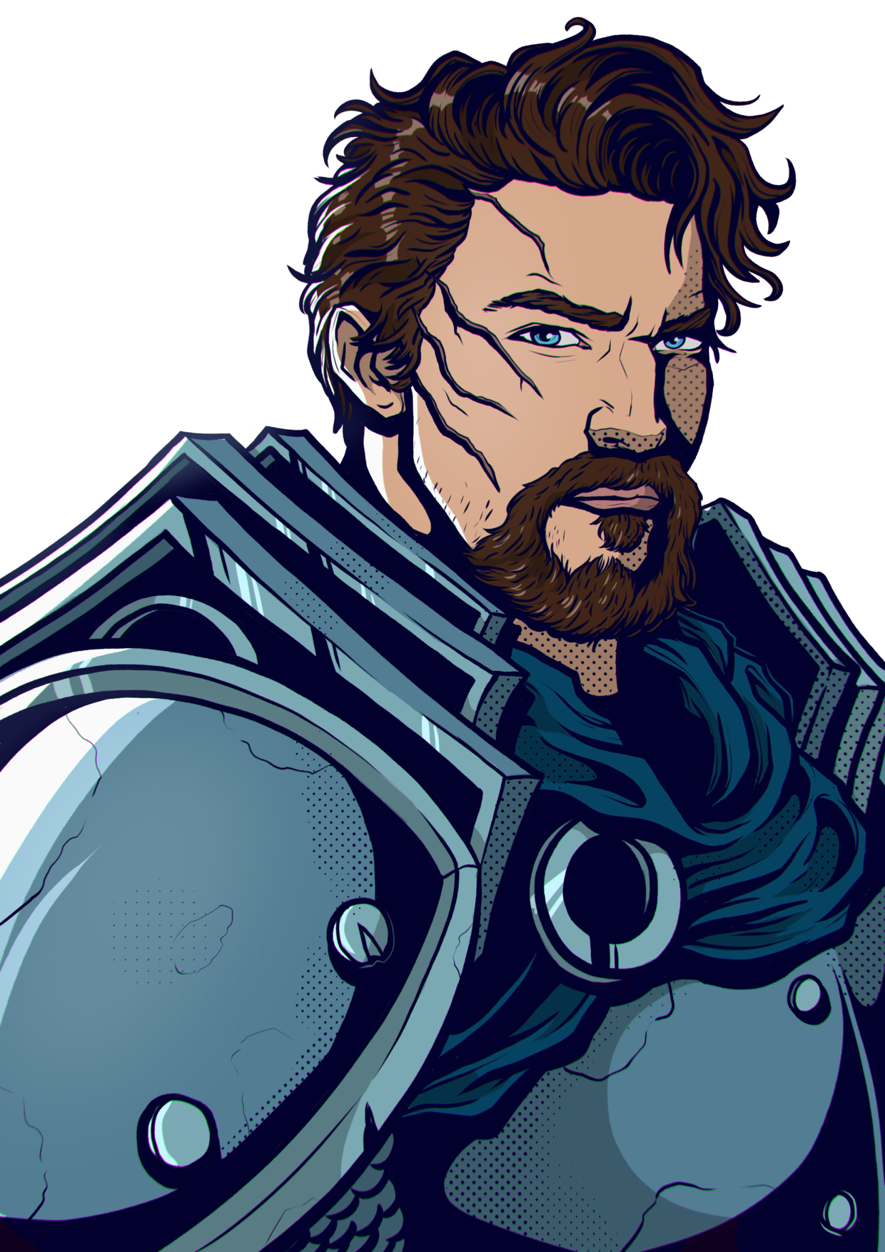 Leon lives by a strict code: repay kindness tenfold, and meet insults with cold steel. His honor binds him as tightly as his armor, but the weight of his past haunts him—visible in the scars etched across his face, which he hides beneath his helmet whenever he is in public. These marks serve as constant reminders of battles won but leave him self-conscious and guarded.